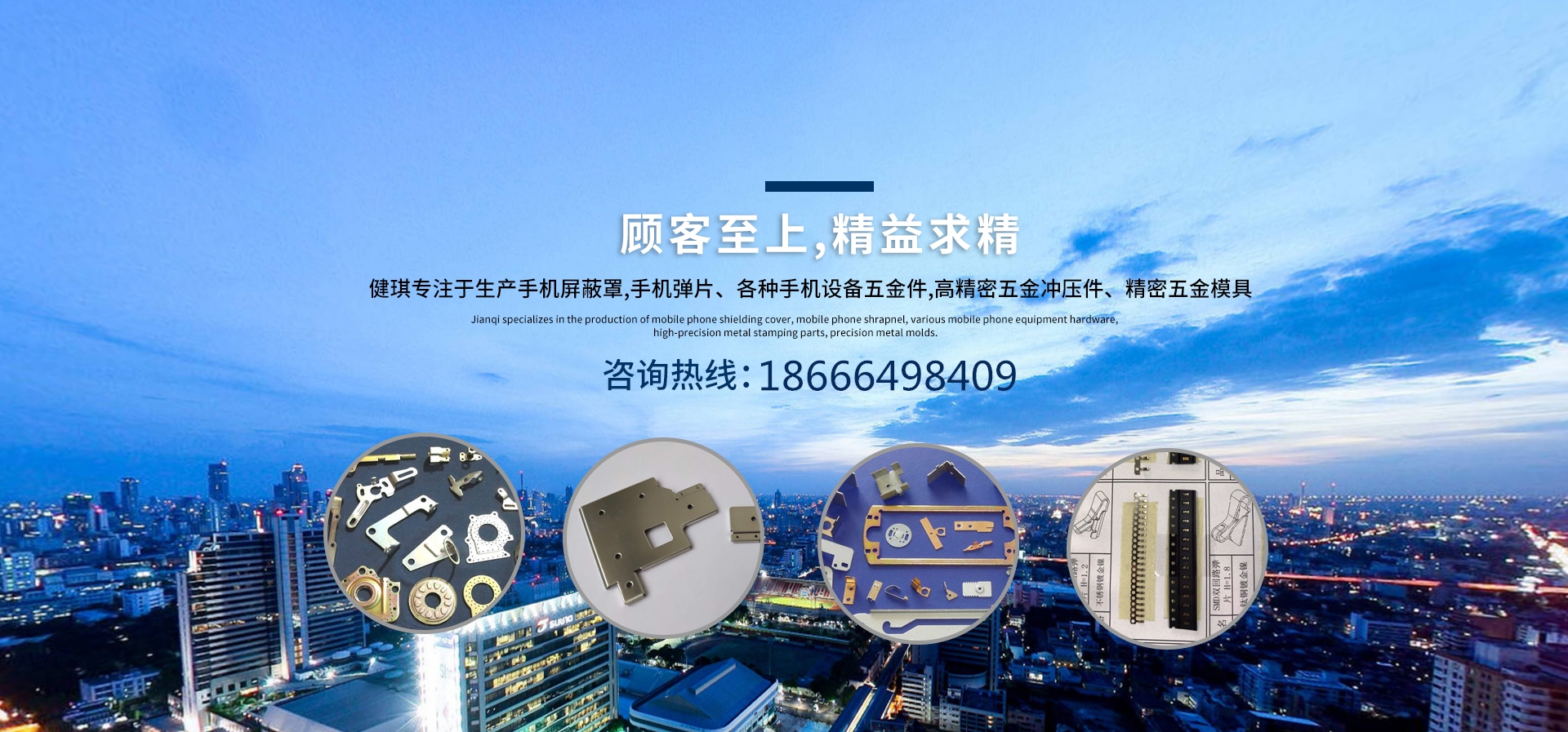 健琪專注于生產(chǎn)手機屏蔽罩,手機彈片、各種手機設(shè)備五金件,以及高精密五金沖壓件、精密五金模具。宜賓市健琪精密五金制品有限公司一直以“顧客至上,精益求精”為指導(dǎo)思想;以“質(zhì)量第一,持續(xù)改進(jìn)”為公司的最宗旨;以“以客為尊,以人為本,共同發(fā)展的管理理念;以“高效,創(chuàng)新,團結(jié),感恩”為企業(yè)精神。與客戶、全體員工一起成長!歡迎各界朋友蒞臨參觀、指導(dǎo)和業(yè)務(wù)洽談。